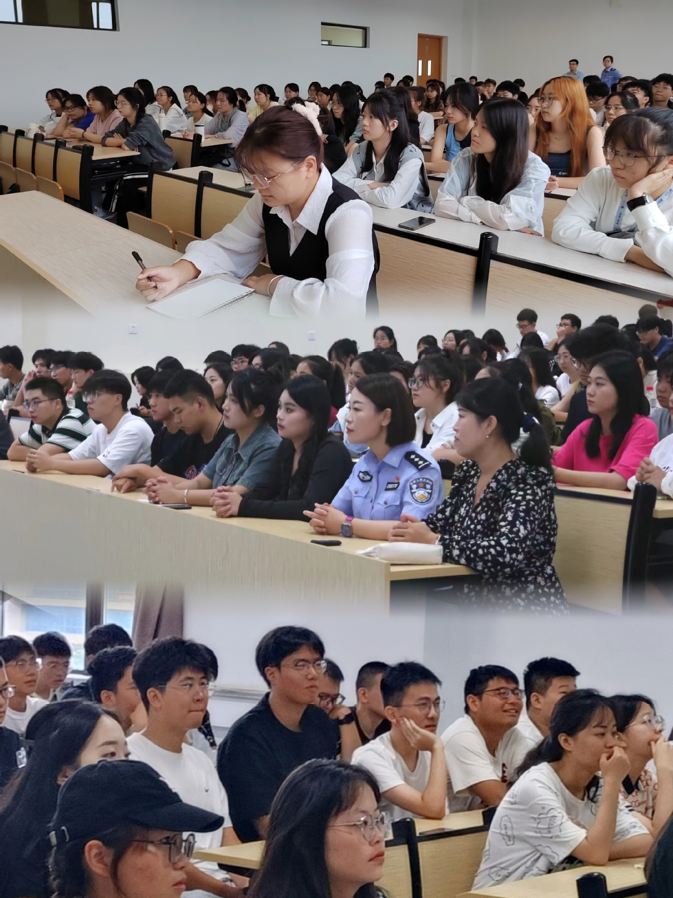 在西太湖校区立德楼举行2023级新生反电信网络诈骗专题讲座。常州市公安局经开区分局二级警长卜雅倩、常州市公安局武警分局嘉泽派出所社区巡防中队副中队长谢小成、常州市公安局刑警支队九大队警官叶子辰受邀指导。国产精品全体本科、研究生新生参加讲座。