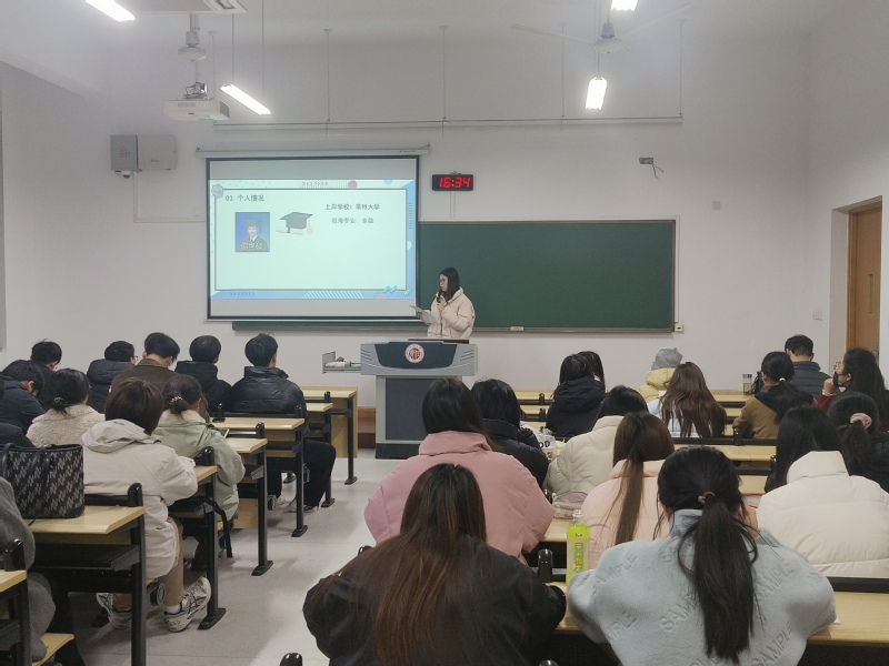 为助力学生科学规划升学路径,持续营造考研升学氛围,国产精品 于12月2日下午正式启动“研途领航”系列活动。首场讲座在西太湖校区立德楼115举办,金融系主任程安、25级研究生吴越担任主讲,为2023级金融学、金融工程专业学生提供针对性指导。