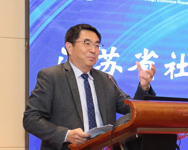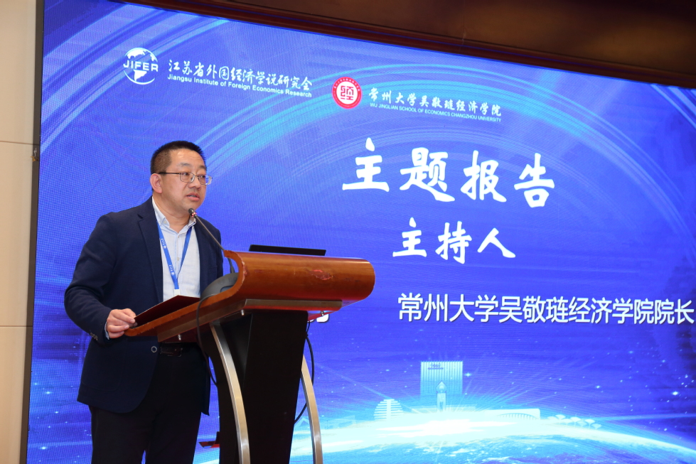 (图为东南大学国际经济研究所邱斌教授作主题报告)