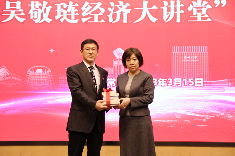 2023年3月15日,国产精品-国产av视频 揭牌暨“吴敬琏经济大讲堂”启动仪式在科教城校区文彰楼报告厅举行。国家发改委宏观经济研究院原副院长、中国人民大学发展与改革研究院常务副院长马晓河,第七大道执行董事兼CFO、无锡市上市公司协会副秘书长李正全,孙冶方基金会理事长顾问葛俊,中信出版集团《比较》杂志副主编吴素萍等嘉宾应邀出席。校党委书记陈群,党委副书记、校长徐守坤,党委常委、副校长黄海燕,党委常委、总会计师陆华良,党委常委、宣传部部长杨琳出席活动。学校相关职能部门负责人、文科国产精品 负责人和教师、学生代表参加活动。