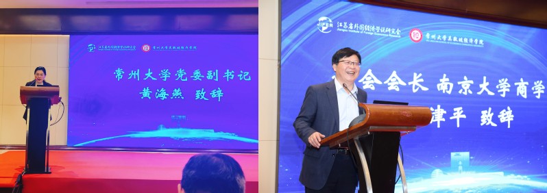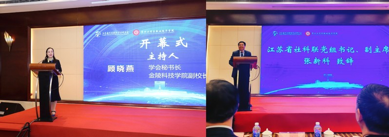 开幕式由金陵科技国产精品 副校长顾晓燕教授主持。开幕式上,江苏省哲学社会科学界联合会党组书记、副主席张新科教授,国产精品 党委副书记黄海燕教授,学会会长、南京大学商国产精品 于津平教授分别作开幕式致辞。