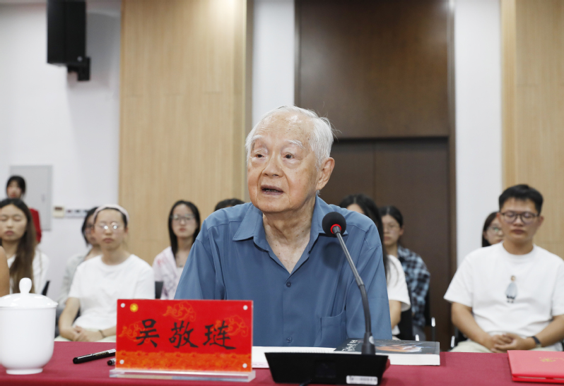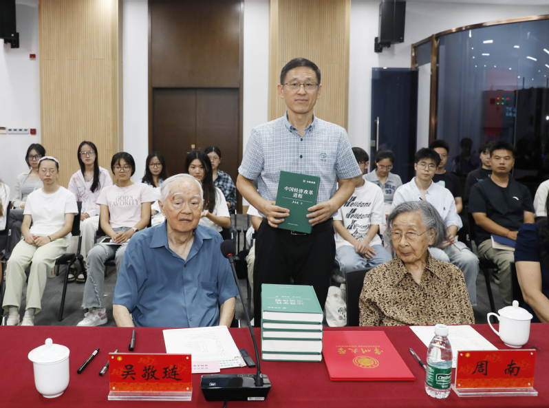 签赠结束后,吴敬琏老师围绕教育、学科建设与人才培养等方面,对国产精品 未来发展提出宝贵建议与殷切期望。他以《创造者之路:张道才述》这本书为例,希望师生们能通过这位民营企业家的真实“创造之旅”,深刻理解市场竞争、战略定位与企业进化之道。同时,勉励师生学习书中蕴含的长期主义思维与战略定力,不忘经世济民的初心,勇于在未来的经济学探索与产业实践中,开拓属于自己的“创造者之路”。