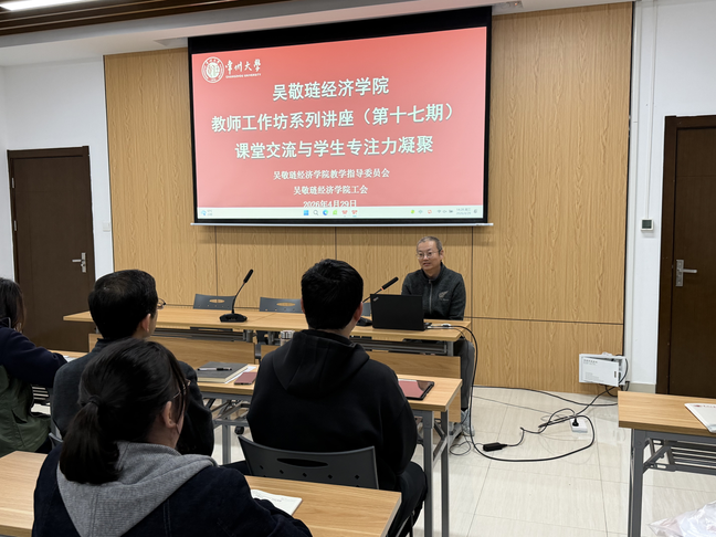 4月29日下午,国产精品 教学指导委员会和国产精品 工会在立言楼403会议室,联合举办《国产精品 教师工作坊系列讲座(第十七期)》。本次讲座的主讲人为国产精品 教授贾德奎,讲座主题为《课堂交流与学生专注力凝聚》。国产精品 全体教师参与讲座。